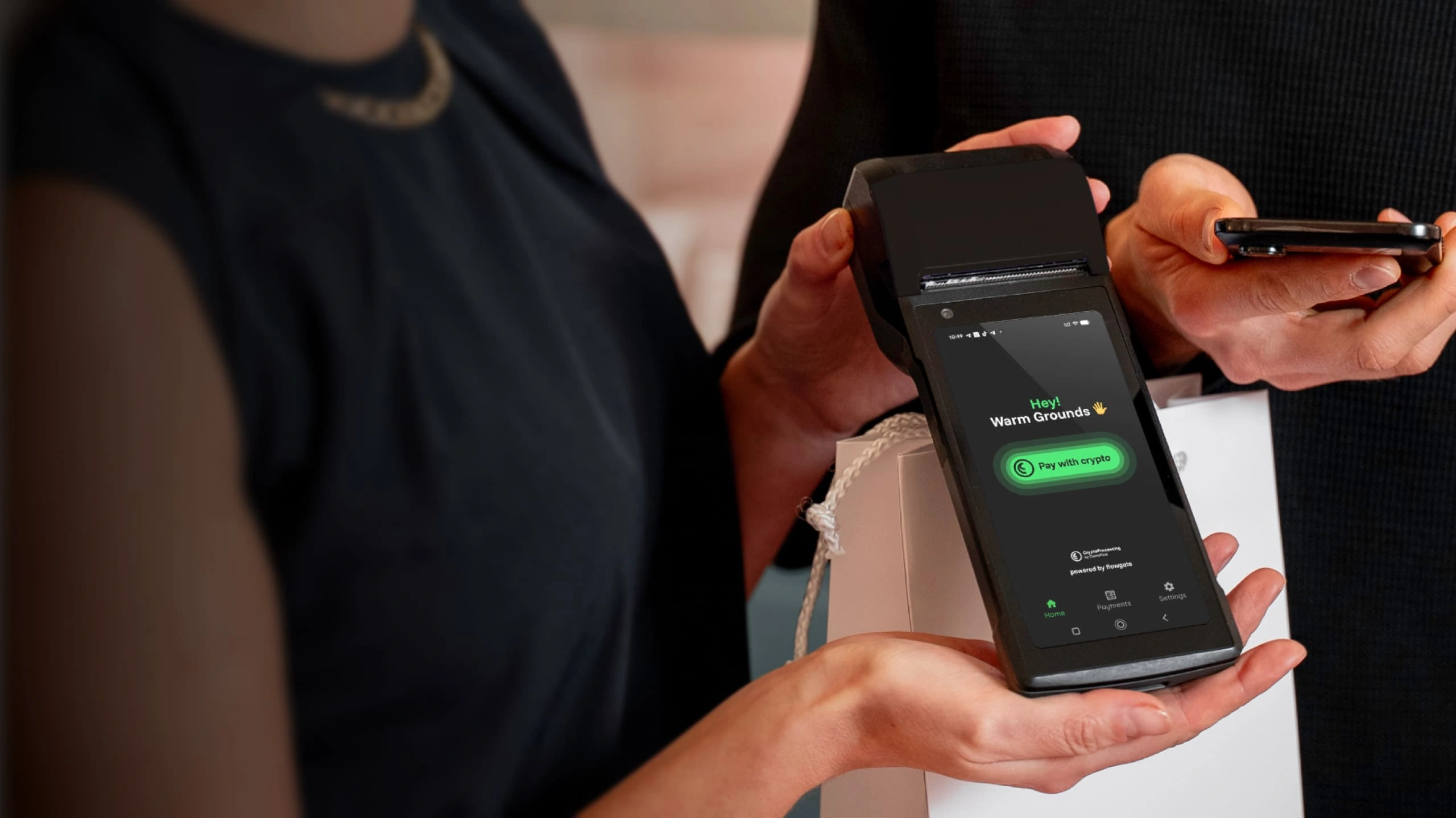 A POS for cryptocurrency payments lets customers pay with crypto right at the counter. You choose the setup that fits your store: a dedicated terminal, SoftPOS, QR payments, or a POS API.
